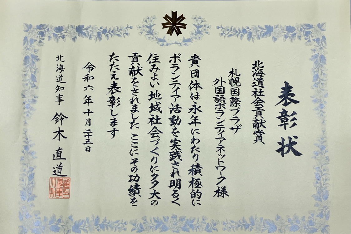 ![]() 平成26年(2014) 札幌市福祉ボランティア貢献賞 |