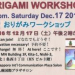 2016年12月18日 / 最終更新日時 : 2018年2月21日 info イベント おりがみワークショップ(Origami Workshop)を開催しました 日本の伝統文化のひとつ「おりがみ」を一緒に体験してみませんか! 毎月1回の開催で予約は不要。参加費は無料です。お気軽にご参加ください。 12月17日(土)「おりがみワークショップ」を開催しました。 場所は札幌国際プラザで […]
